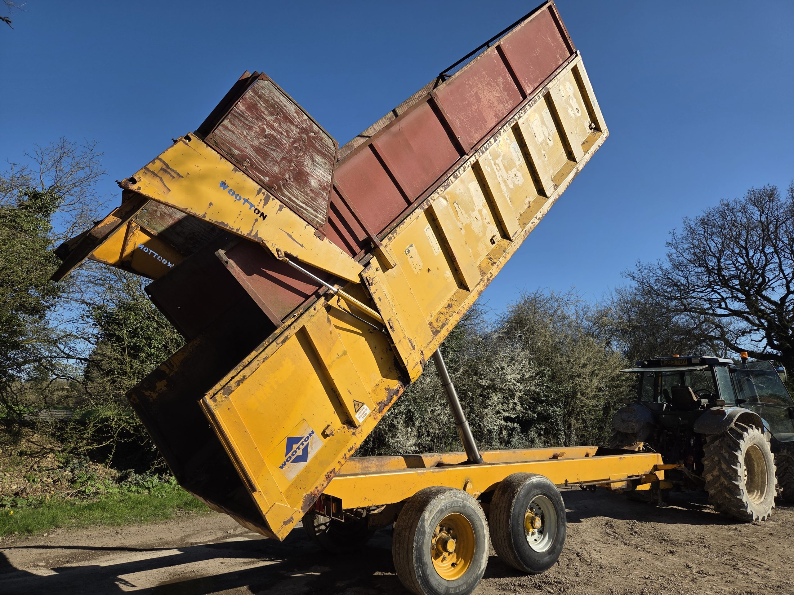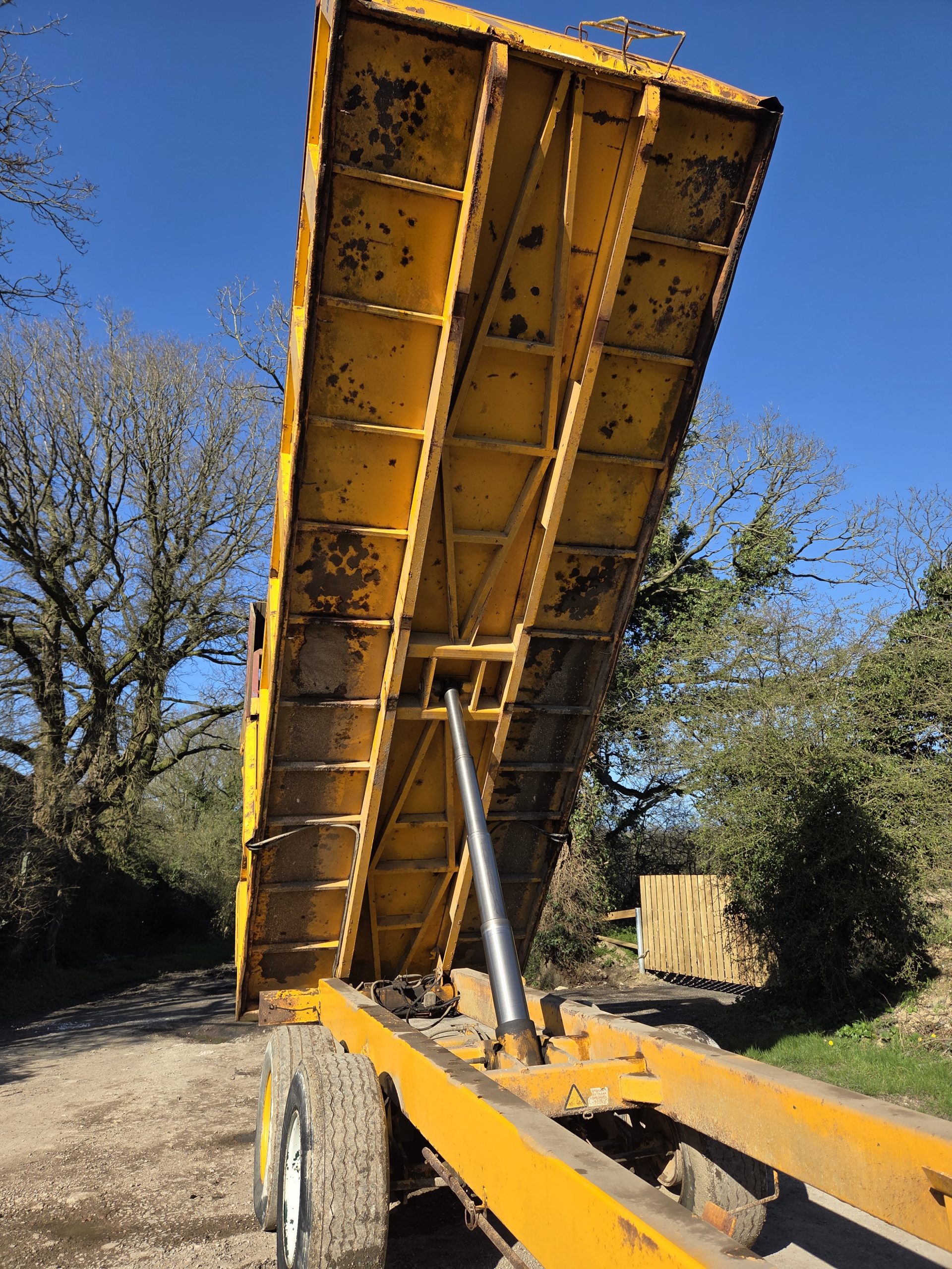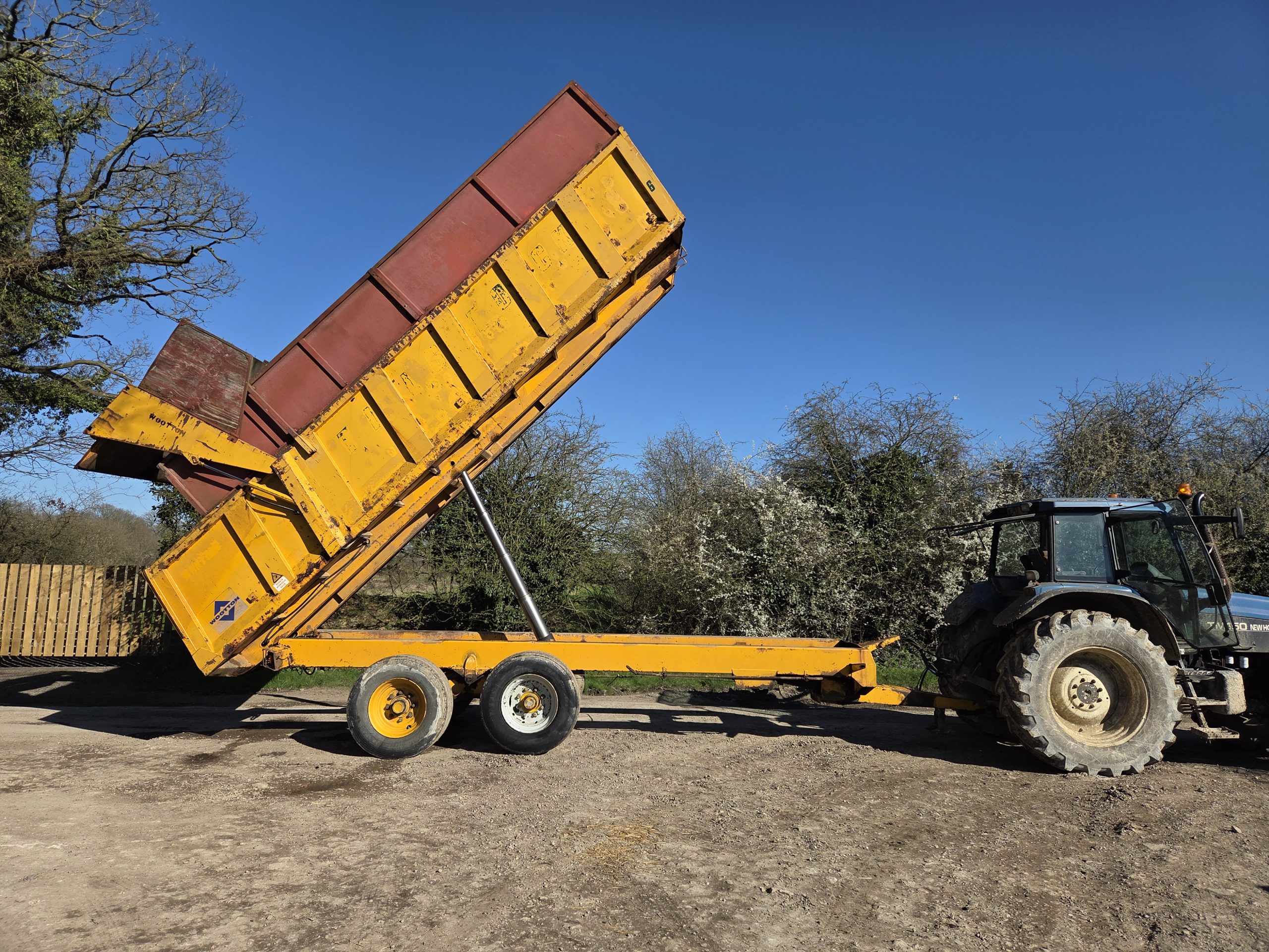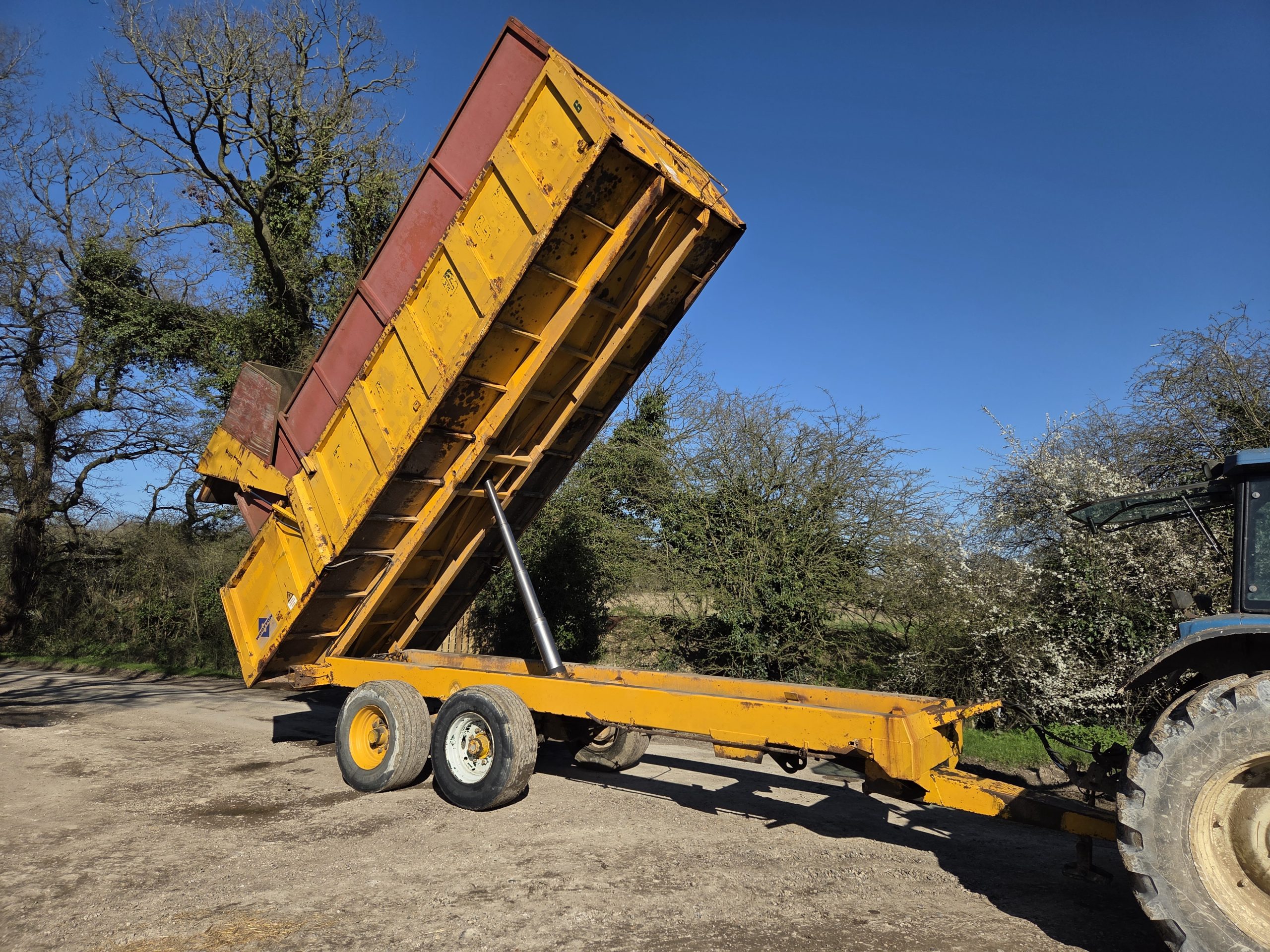 14 Ton Gull Tipping trailer, Silage sides, Grain hatch, Hydraulic rear door, 8 Stud rocking beam, Super singles, Hydraulic Brakes, Lights, Swivel hitch, Big Trailer.