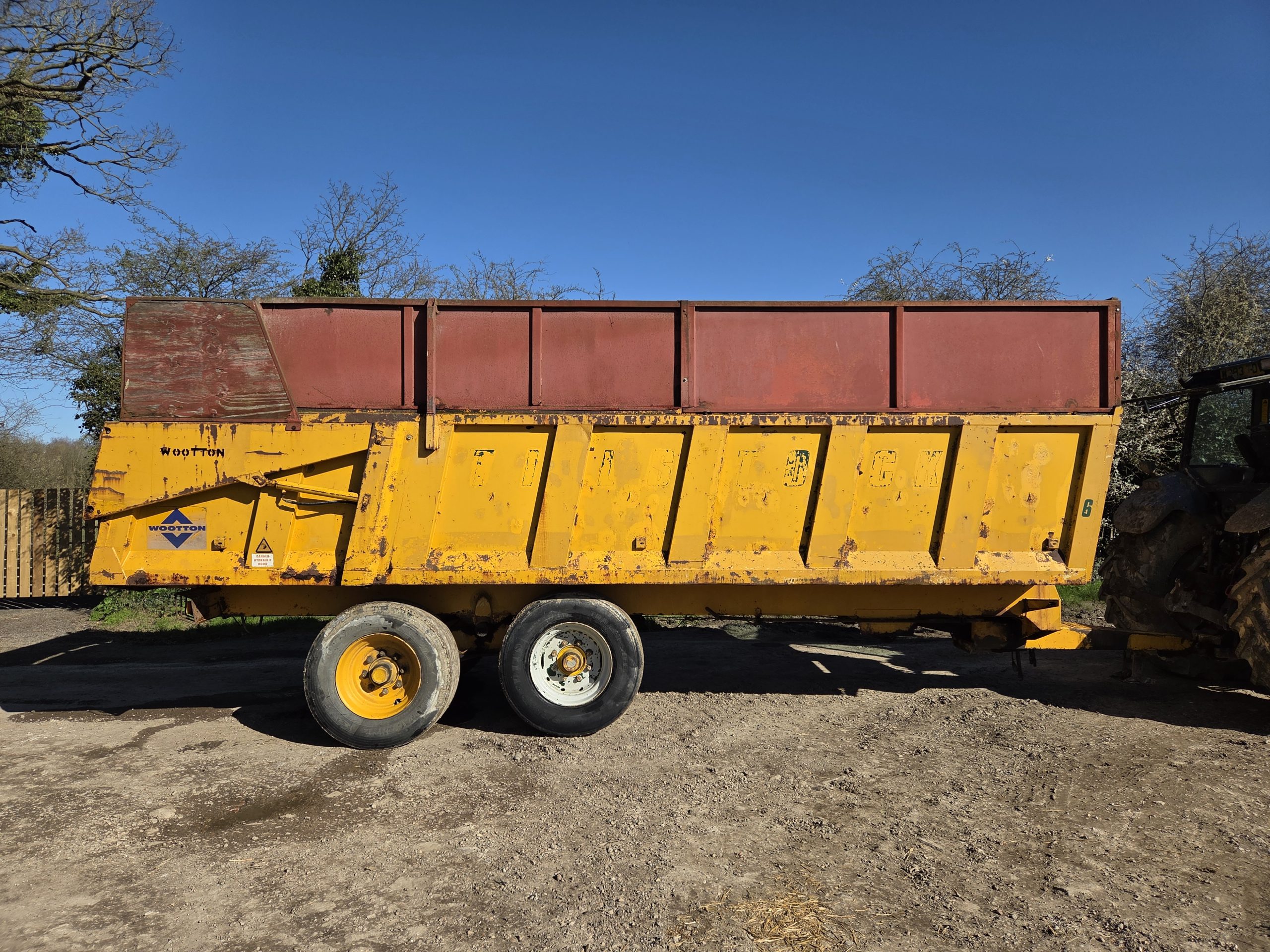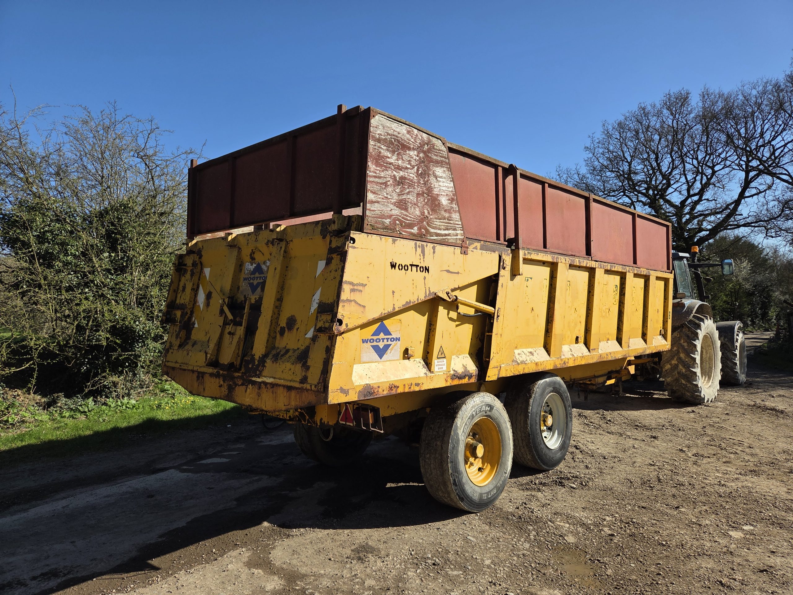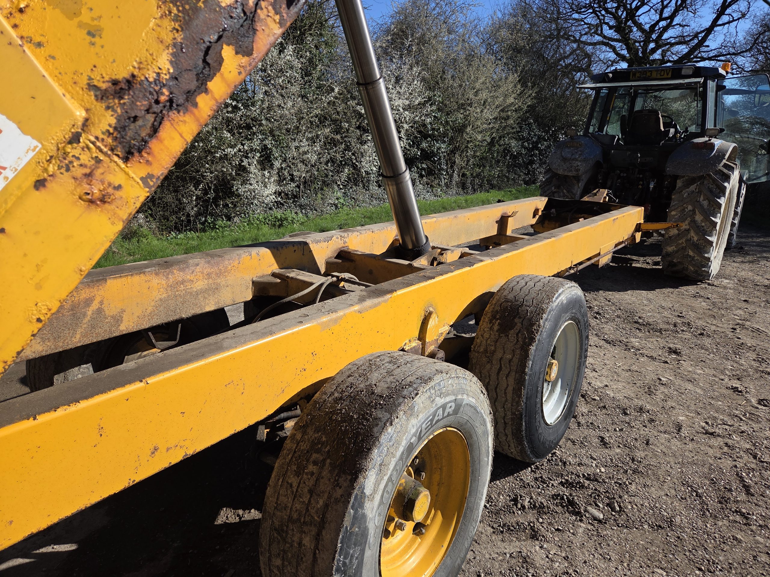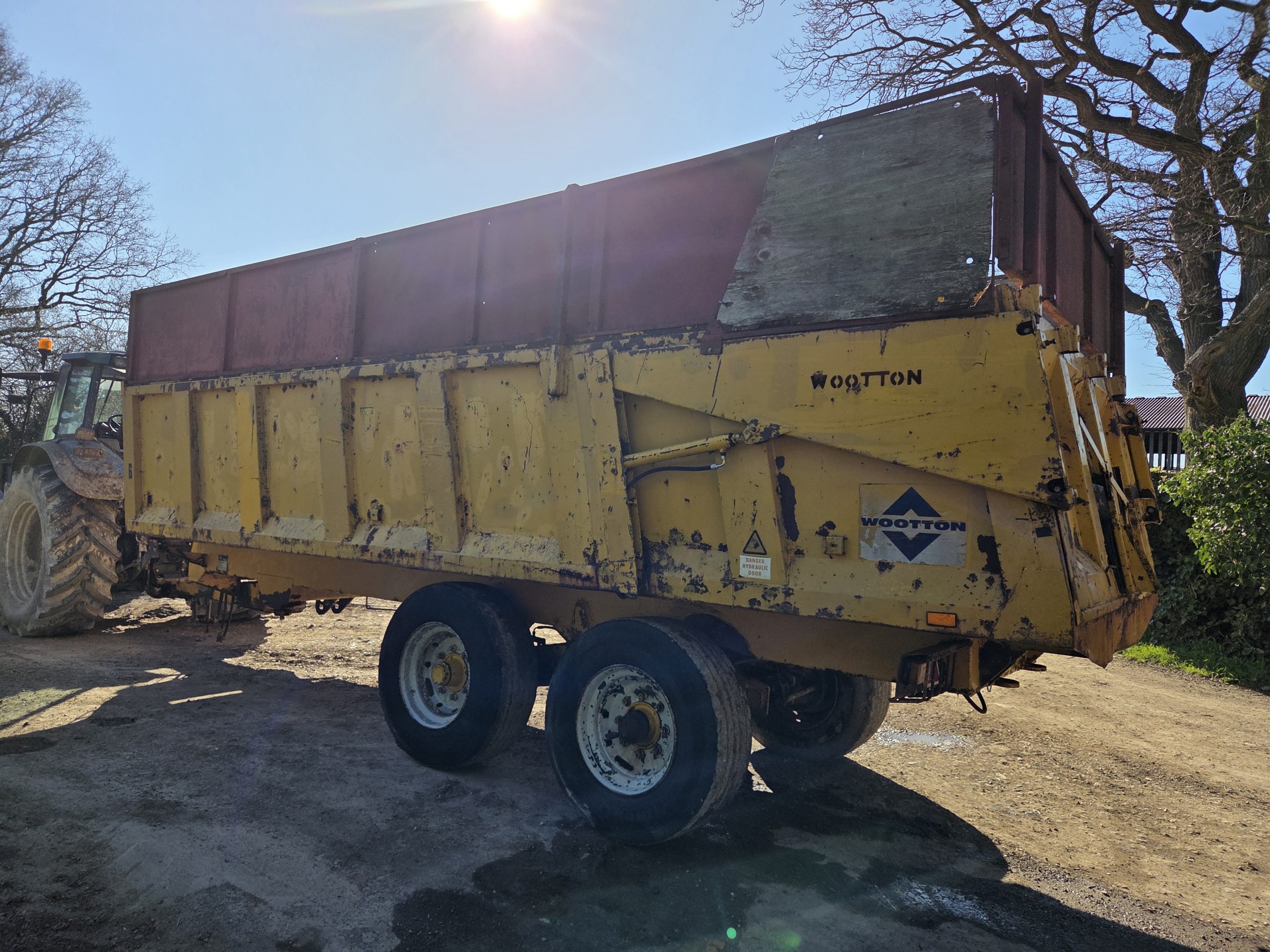 14 Ton Gull Tipping trailer, Silage sides, Grain hatch, Hydraulic rear door, 8 Stud rocking beam, Super singles, Hydraulic Brakes, Lights, Swivel hitch, Big Trailer.