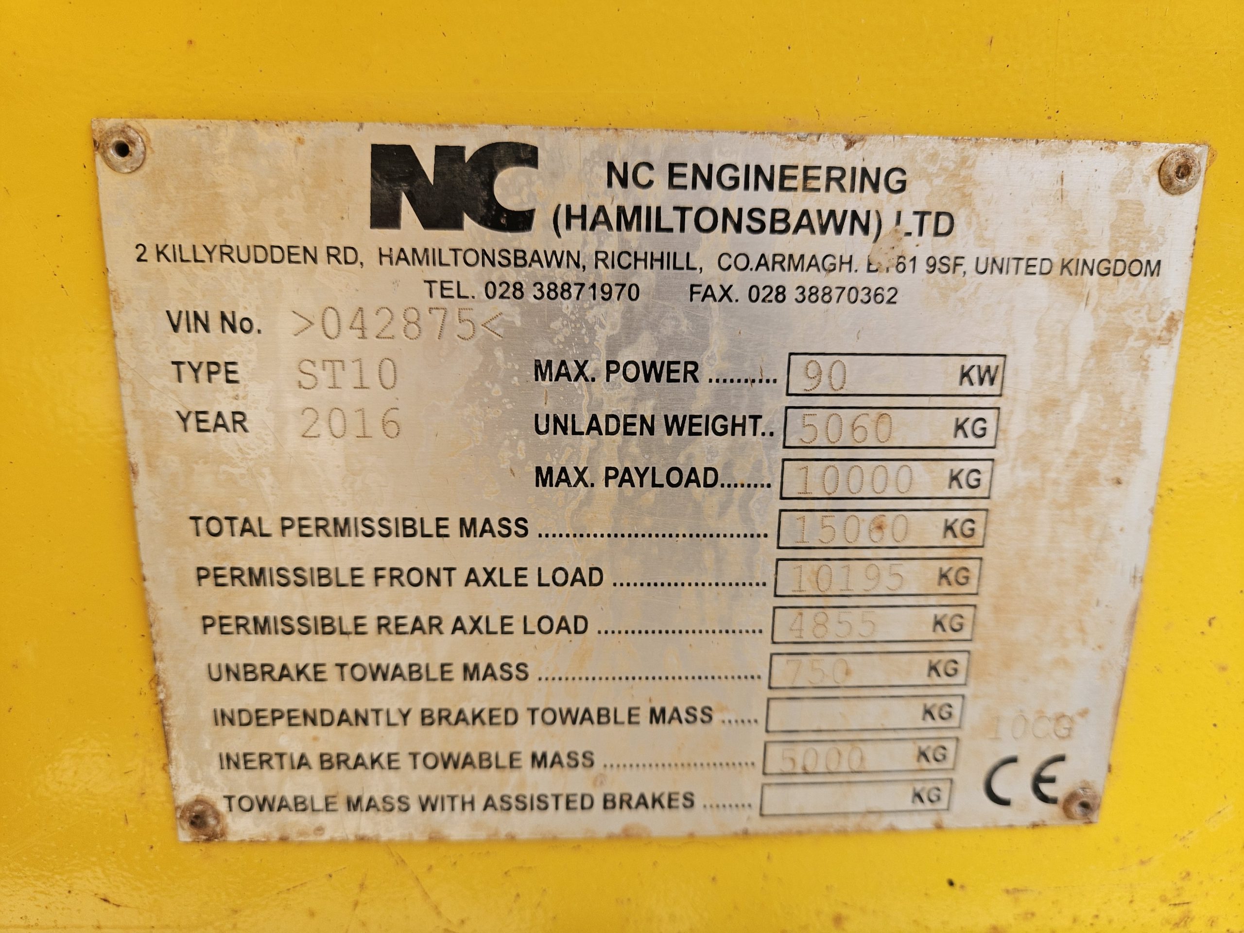 2016 NC Engineering 10 ton dumper, straight skip, roll bar, 4wd, road lights, 4 cylinder Duetz turbo diesel engine, 2146 hours, tidy machine